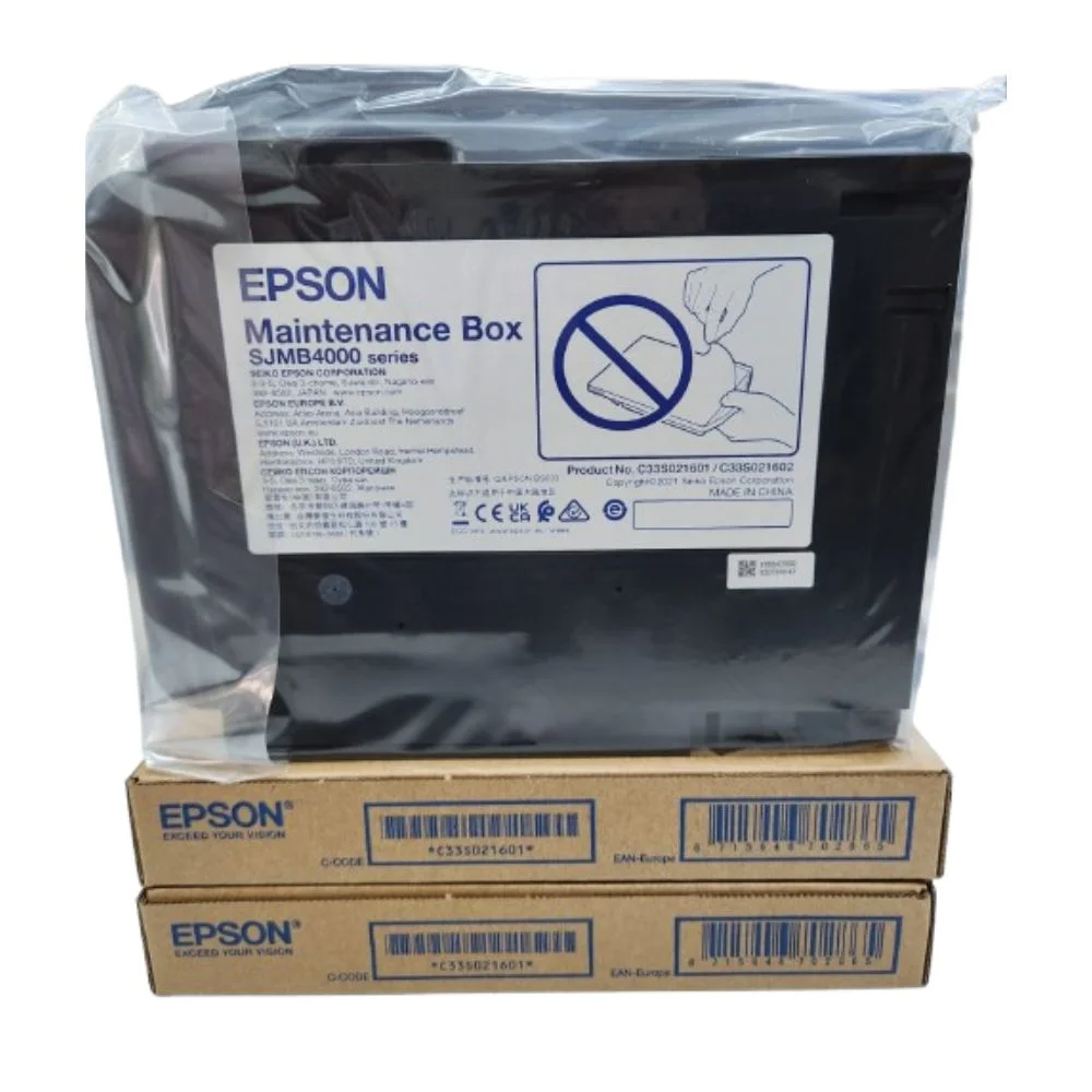 The Epson SJMB4000 Maintenance Box (C33S021601/C33S021602) is a high-capacity, essential accessory designed for the Epson ColorWorks C4000 series printers, including the C4000e (BK) and C4000e (MK). This maintenance box efficiently collects excess ink flushed during printhead cleaning, ensuring optimal printer performance and preventing clogs. With a robust design and easy replacement process, it minimizes downtime in high-volume printing environments. Ideal for retail, logistics, and manufacturing, it supports consistent, high-quality label printing.